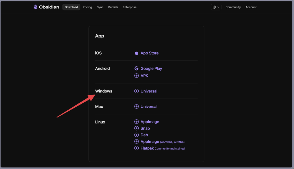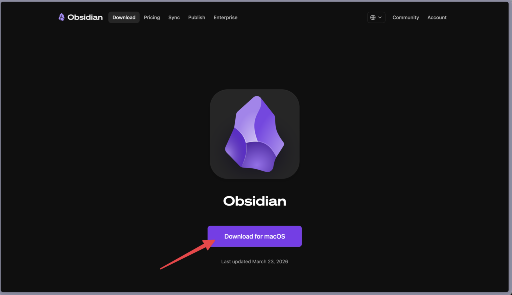 - Obsidian公式サイトにアクセス